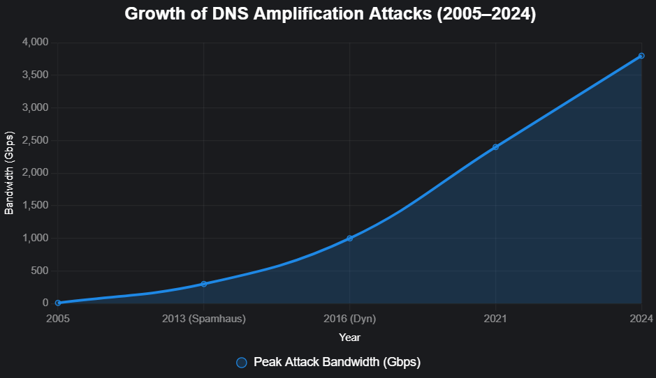 This historical arc underscores a sobering reality: DNS amplification is not a relic of the past. It has matured into a persistent, evolving threat. Each major incident has taught defenders something new, but it has also emboldened adversaries who know that the basic ingredients – UDP, open resolvers, and asymmetric response sizes, are not going away anytime soon.